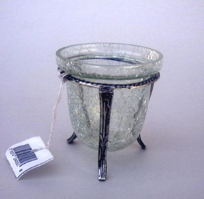 SP24092 - Cracked Glass Votive with silver plated Stand